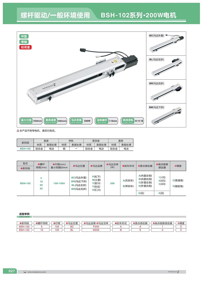 六、馬達(dá)安裝位置:多方向馬達(dá)安裝位置可供選擇,讓機(jī)臺(tái)設(shè)計(jì)更有彈性。Bc(馬達(dá)外置)BL(馬達(dá)左折) BR(馬達(dá)右折) BM(馬達(dá)下折) M(馬達(dá)內(nèi)置)